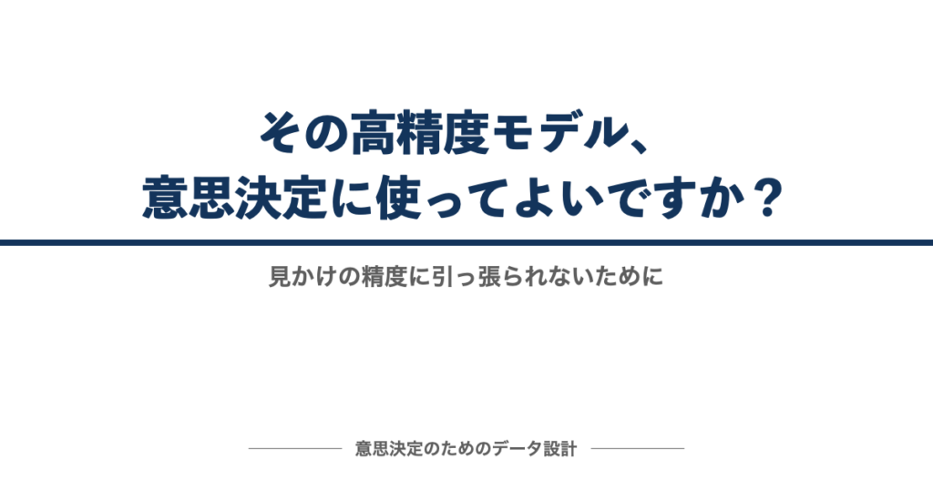精度が高いモデルでも、そのまま意思決定に使ってよいとは限りません。見かけの精度と、未知データでの崩れにくさ、説明責任に耐えるかは別です。高精度モデルを使う前に整理したい論点を解説します。 -