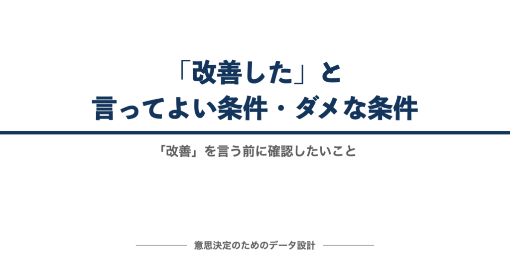 前後比較の数字だけで「改善」と言い切ると、後から説明に困ります。比較の前提と判定基準を踏まえ、言ってよい条件/ダメな条件の線引きを整理します。